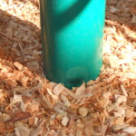 Variegated society garlic grown in Linden Mix with walk on fir bark for top dressing